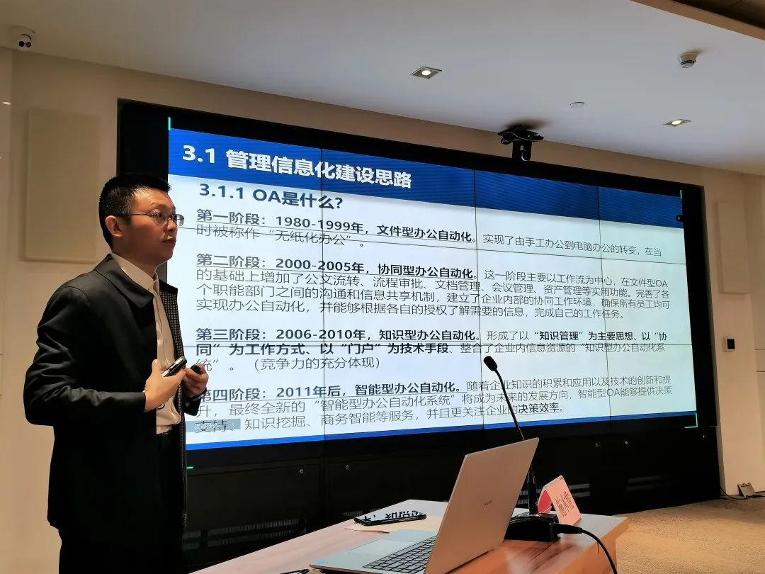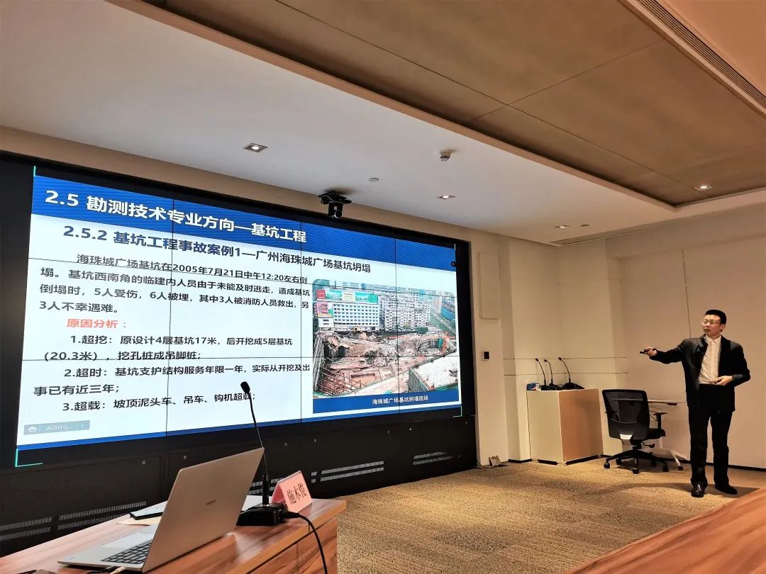 授課進入尾聲時,施木俊重點推介了公司在行業(yè)發(fā)展,企業(yè)管理上的優(yōu)勢:在勘測與巖土工程專業(yè)領(lǐng)域,武勘公司能為工程建設(shè)項目的策劃階段提供最優(yōu)解,能精準把控工程全過程風險,實現(xiàn)項目風險、經(jīng)濟與時間相平衡;已積累的分布在武漢各地數(shù)十萬的鉆孔資料和已建設(shè)的數(shù)據(jù)管理平臺,為項目開發(fā)初期高效準確進行成本、工期預(yù)估提供了重要基礎(chǔ)資源;現(xiàn)有的智慧監(jiān)測平臺及自動運行的測量機器人讓項目建設(shè)與運行維護一切盡在掌握;管理信息化更是成為了打破深井,為企業(yè)發(fā)展賦能的重要手段。