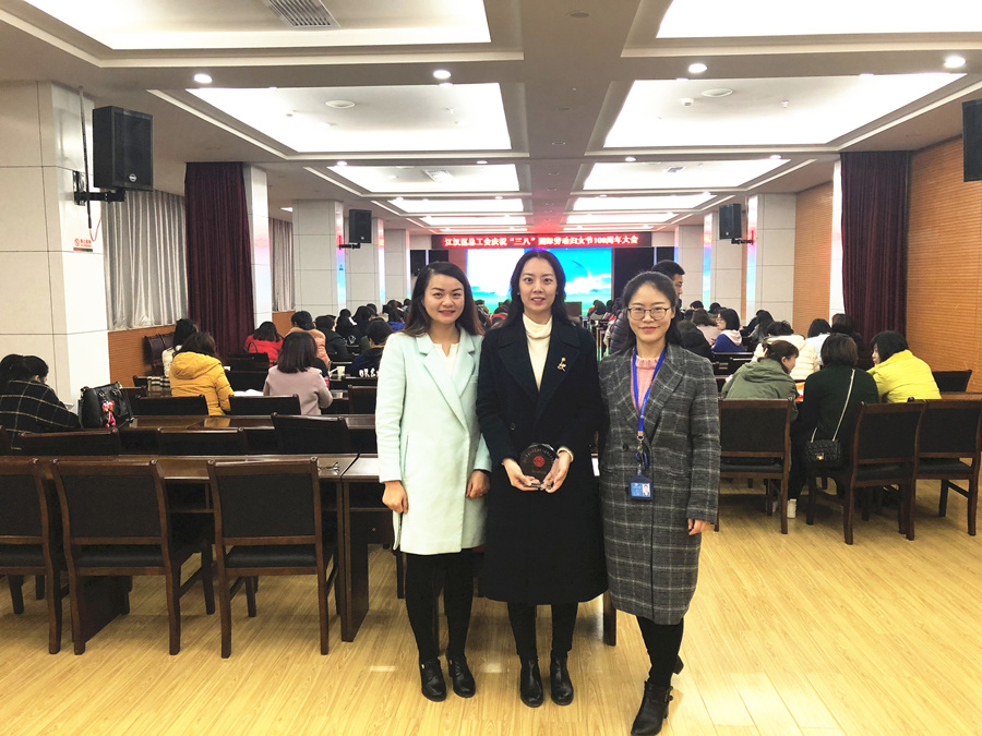 3月9日,江漢區總工會召開慶祝“三八”國際勞動婦女節108周年紀念大會,我公司測繪工程公司程會平同志榮獲2017年度“江漢區崗位建功立業女明星”,綜合部曹懷予同志榮獲2017年度“江漢區優秀書香女職工”,不動產代理咨詢中心榮獲2017年度“江漢區女職工建功立業示范崗”。(綜合部供稿)