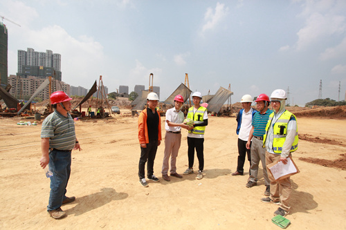 7月24日,公司董事長廖建生、副總經(jīng)理安永強(qiáng)、副總經(jīng)理兼總工程師官善友、副總經(jīng)理蔣濤率領(lǐng)綜合部、技術(shù)質(zhì)量安全部(體系辦)、東湖分公司、新區(qū)分公司、基礎(chǔ)工程公司等部門相關(guān)負(fù)責(zé)人親赴一線,依次巡察了沌口村還建樓工程勘察項(xiàng)目、燎原村K8地塊超前鉆工程勘察項(xiàng)目和星河九州K2地塊基坑施工現(xiàn)場,并送去了防暑降溫物品。每到一處,廖董都詳細(xì)詢問工程進(jìn)展、人員配置及作業(yè)時(shí)間安排等情況,強(qiáng)調(diào)要切實(shí)采取防暑措施,合理安排作業(yè)時(shí)間,確保人員安全。廖董鼓勵(lì)年輕同志要抓住城市建設(shè)大發(fā)展的時(shí)代機(jī)遇,踏實(shí)工作、刻苦研究、勇于創(chuàng)新,爭取更大的進(jìn)步,同時(shí)強(qiáng)調(diào)在高溫期間,項(xiàng)目巡察慰問工作要常態(tài)化,確保安全生產(chǎn)“零事故”。
