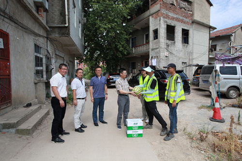 2018年入夏以來,武漢出現(xiàn)持續(xù)40℃以上的高溫天氣,室外地表溫度普遍達(dá)到60度以上。高溫酷暑下,我公司分布在全市各區(qū)域的項(xiàng)目部工作人員依然奮戰(zhàn)在項(xiàng)目施工現(xiàn)場的第一線,他們搶抓施工黃金季,揮汗如雨,確保各項(xiàng)工程的安全、優(yōu)質(zhì)、高效。公司領(lǐng)導(dǎo)高度重視,董事長廖建生親自部署,要求各部門及時(shí)安排防暑降溫物資,注重安全生產(chǎn),同時(shí)指示公司領(lǐng)導(dǎo)立即分赴項(xiàng)目現(xiàn)場慰問指導(dǎo),察看施工作業(yè)情況,解決實(shí)際困難。