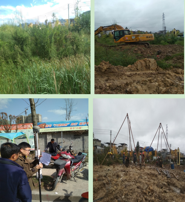 2018年8月受建設方委托,我司進場進行施工勘察,施工勘察采取一樁一孔,共計樁數501根,為滿足建設方的工期要求,我方技術人員與勞務人員,在建設方明確場地條件不具備,但需我司暫時配合、克服困難,對局部樓棟進行施工勘察的情況下,采用多次進場,多次放樣,并用挖機配合方式進行施工,順利完成了建設方交代的任務,獲得了業主的好評,后續未施工鉆孔,待建設方整平場地后進行。