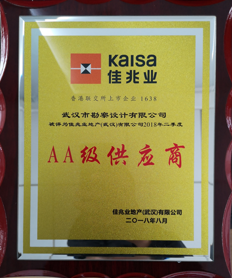 近日獲悉,武漢市勘察設(shè)計有限公司榮獲佳兆業(yè)地產(chǎn)(武漢)有限公司2018年二季度“AA”級供應(yīng)商榮譽稱號,這項榮譽不僅是佳兆業(yè)地產(chǎn)集團對我公司工程質(zhì)量、工作效率和后期服務(wù)的肯定,更是對我公司綜合實力的充分贊賞。對此,我們心懷感恩,武漢市勘察設(shè)計有限公司所取得的每一點進步和成績,都離不開廣大客戶的關(guān)注、信任、支持和肯定。